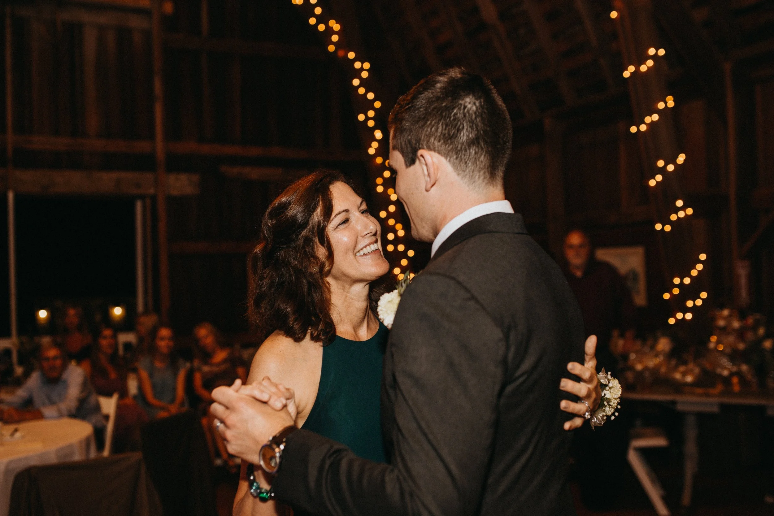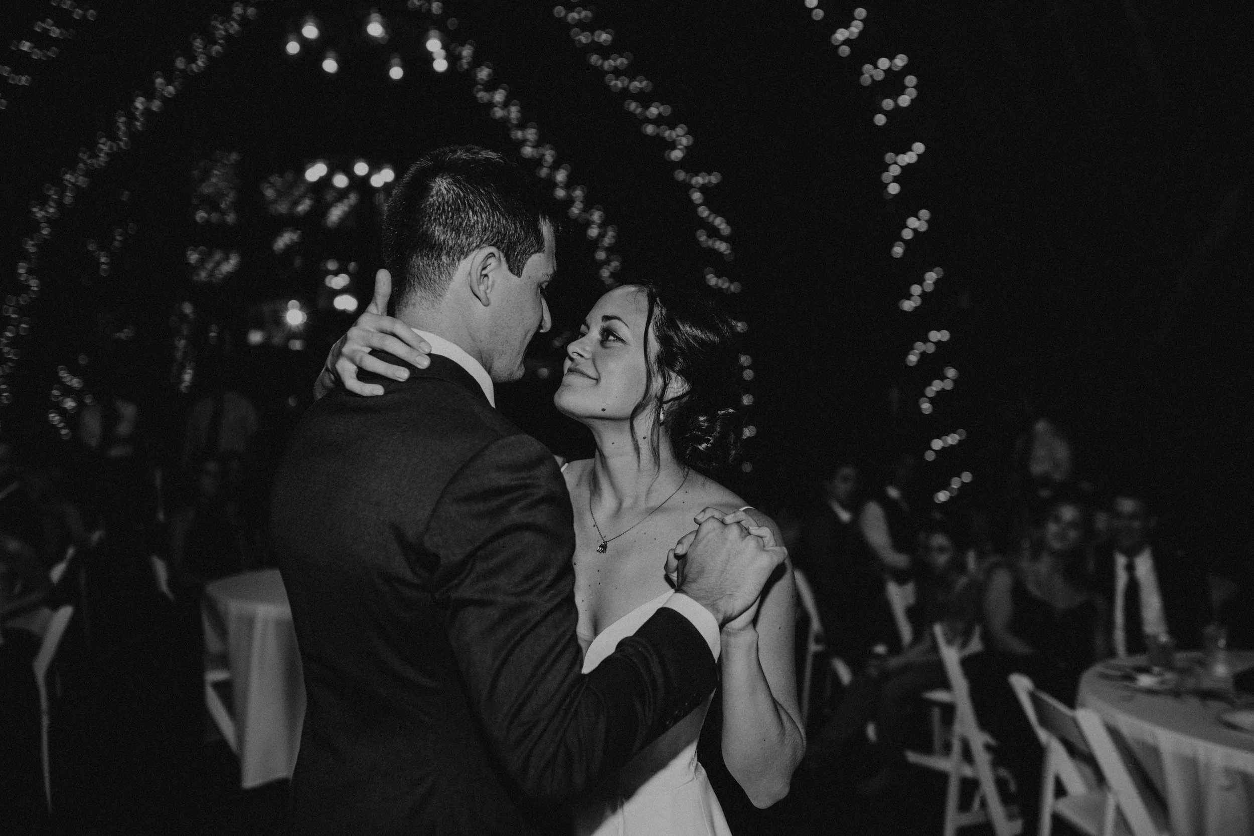 As we moved from side to side, it felt dreamlike and I took in everything my senses could hold: the supportive, joyful faces looking on; the twinkling lights decorated throughout, reflecting in the antique mirrors on the opposite wall; and the warmth of his strong arms as we held each other.